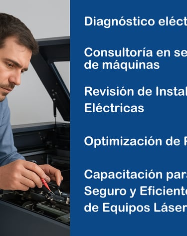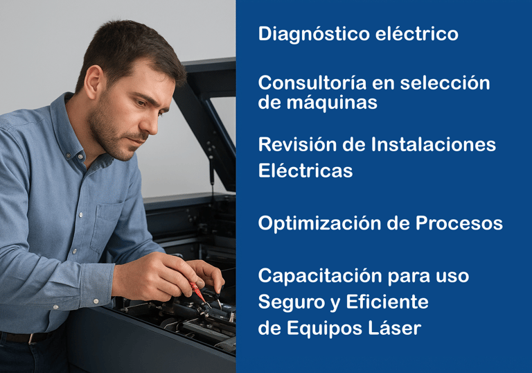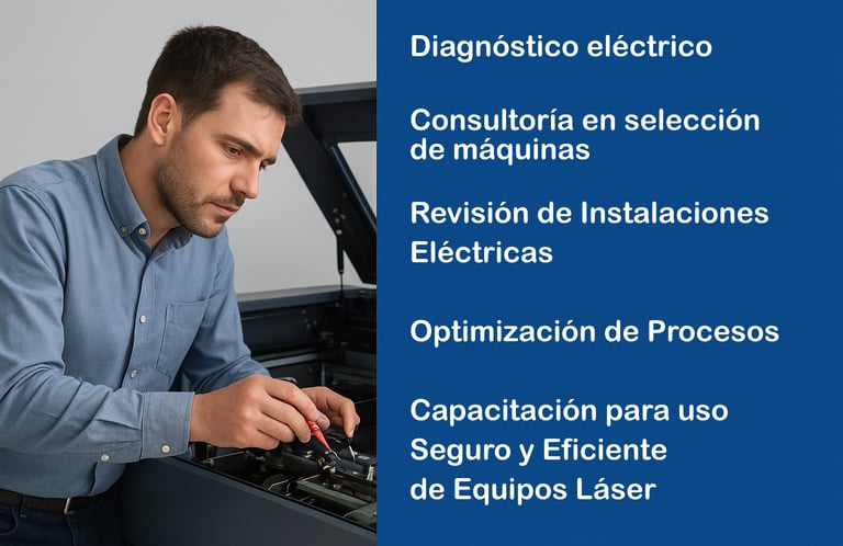 Asesoría y acompañamiento técnico profesional para máquinas láser, routers CNC y sistemas eléctricos asociados.
